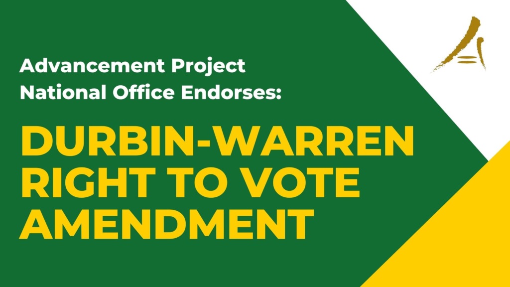 For nearly two decades, Advancement Project National Office has championed an affirmative and explicit #RightToVote Amendment. On August 4, 2020, Senators Elizabeth Warren (D-MA) and Dick Durbin (D-IL) introduced a historic joint resolution to amend the U.S. Constitution to enshrine an affirmative and explicit right to vote. The Durbin-Warren #RightToVote Amendment would: Guarantee the fundamental … Continue reading Enshrining A #RightToVote in the U.S. Constitution